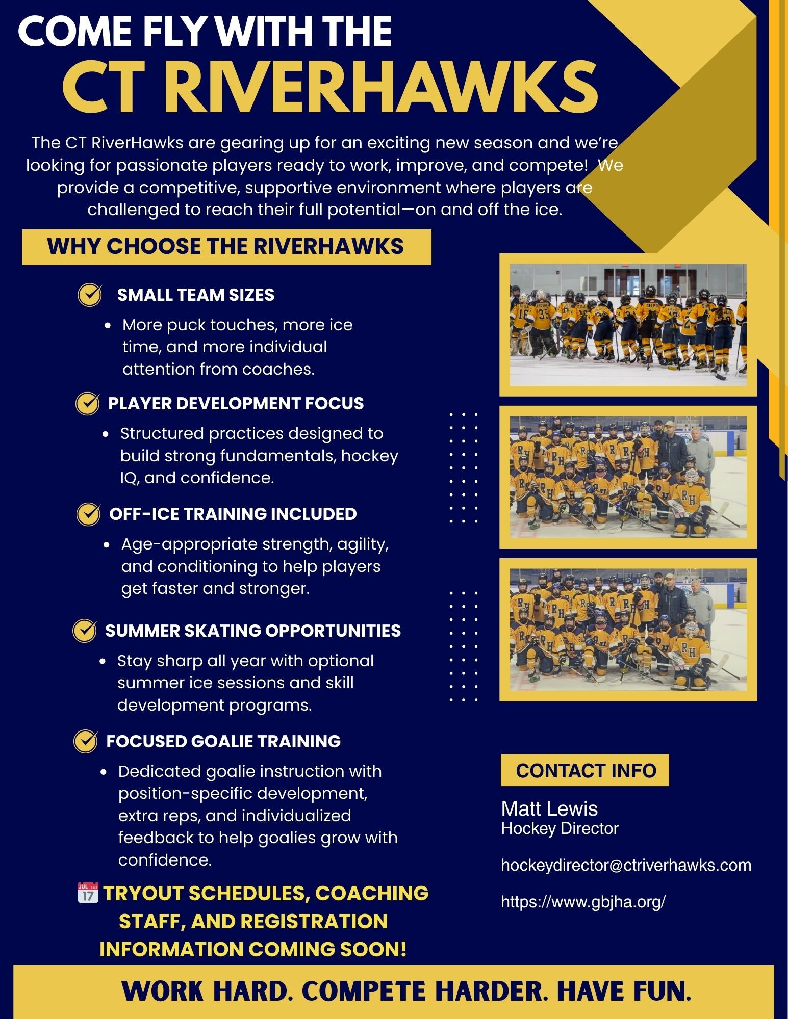 We are very excited to announce the 2026 - 2027 coaching line up for the CT RiverHawks!